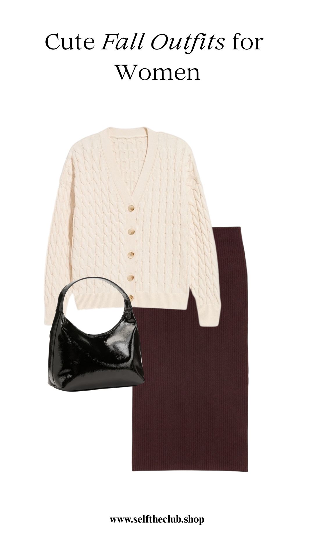 For a feminine yet warm fall outfit, pair a chunky cardigan with a midi skirt and boots. It’s perfect for those golden-hour photoshoots or casual brunches.